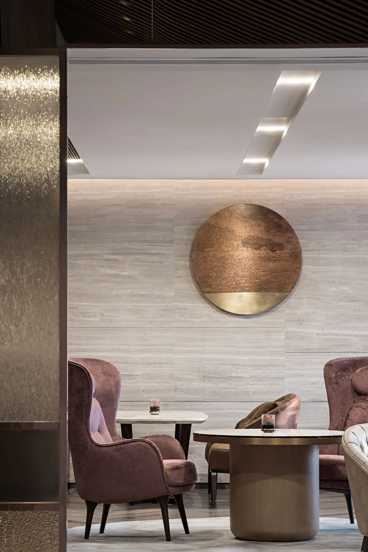 The 20m tall reception space is designed with tradition Chinese architecture proportion in a contemporary design that incorporates art and architecture.